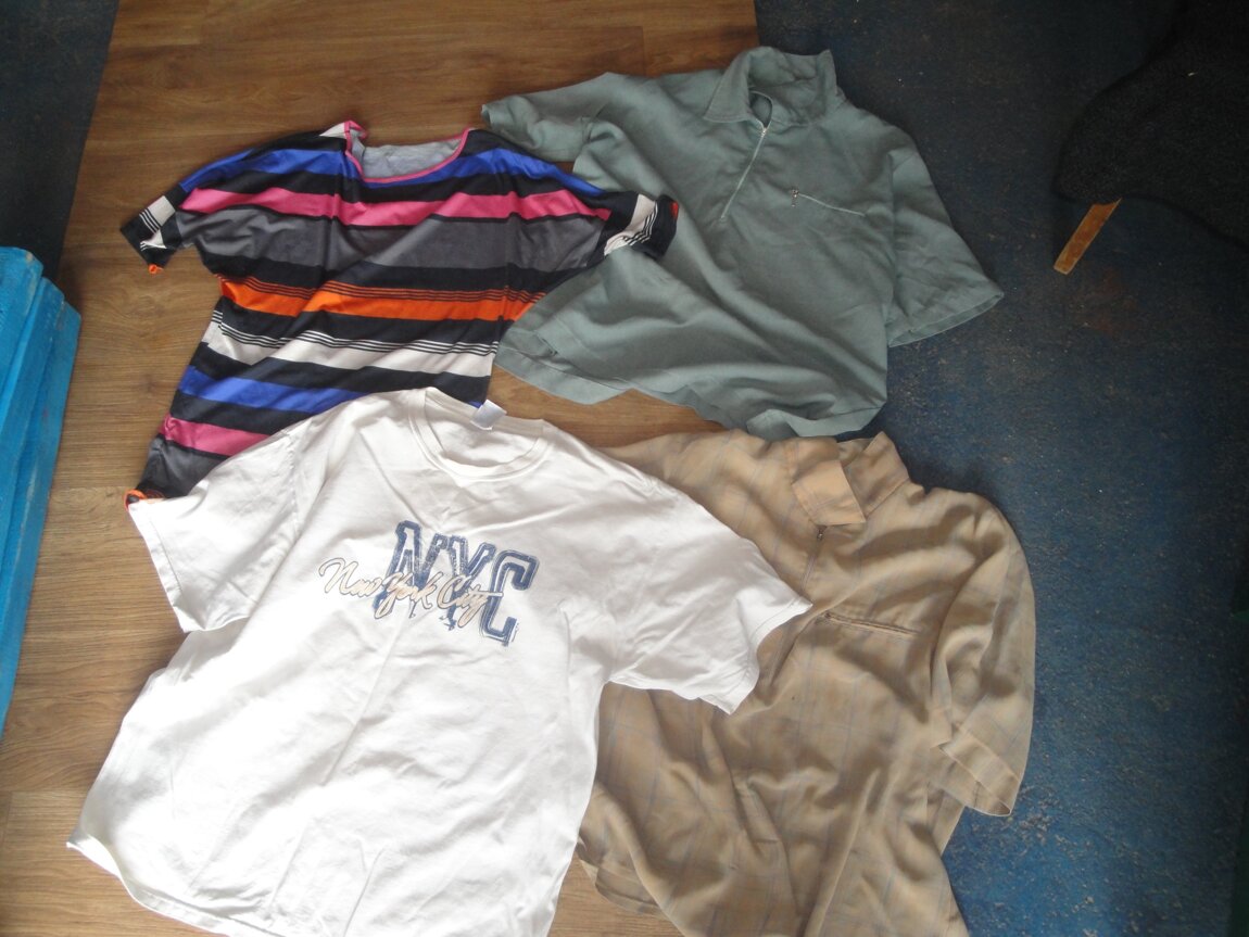 Продам б/у рубашки и футболки по 10 рублей, б/у оригинальный пуховик "ADIDAS" размер "L" за 600 рублей, шерстяные шарфы по 200 рублей, свитера, штаны по 25 рублей, б/у рубашки длинный и короткий рукав по 10 рублей. Возможна доставка.