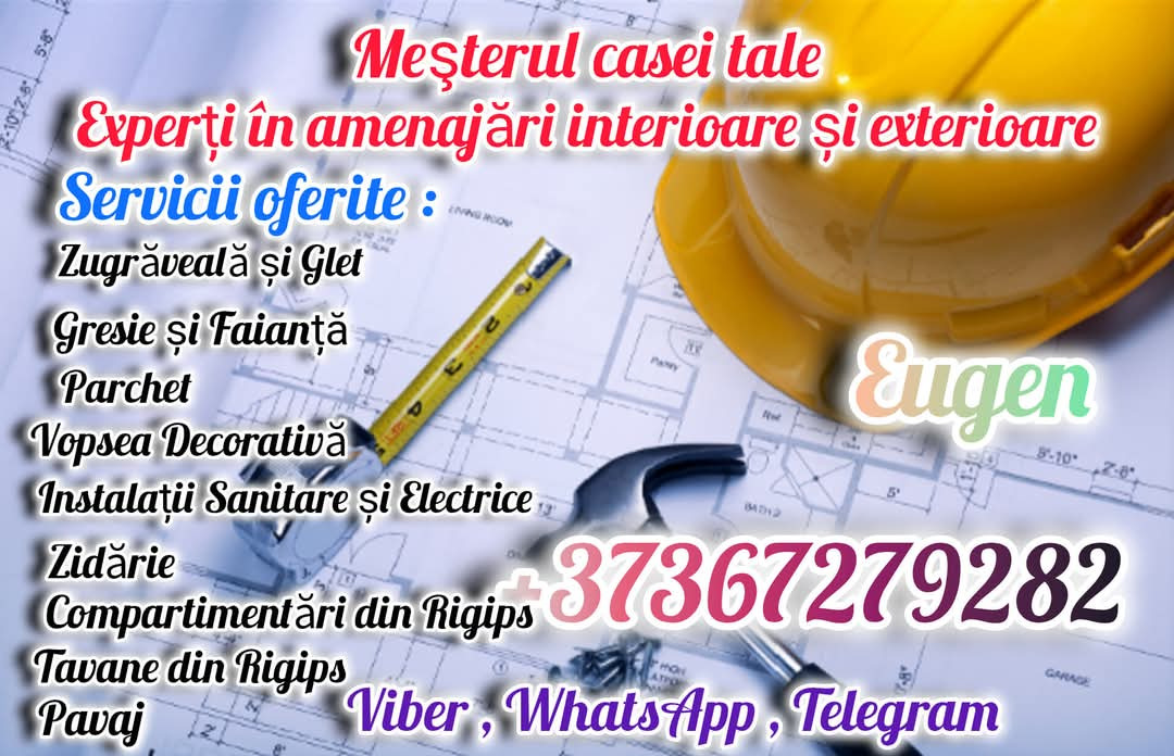 Executăm lucrări complete pentru casă, apartament, oficiu și curte: