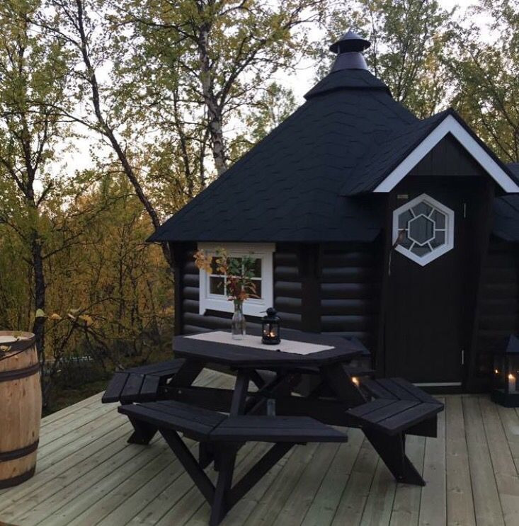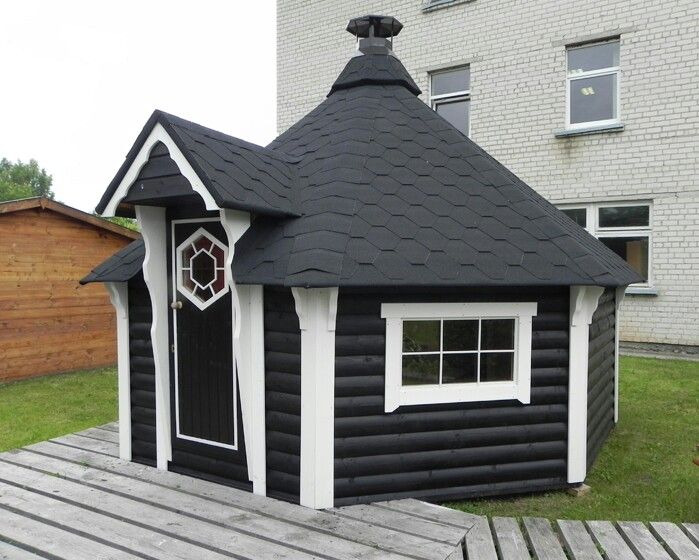 Ее конструкция строится по принципу финского гриль-домика: собирается на месте из готовых панелей.
