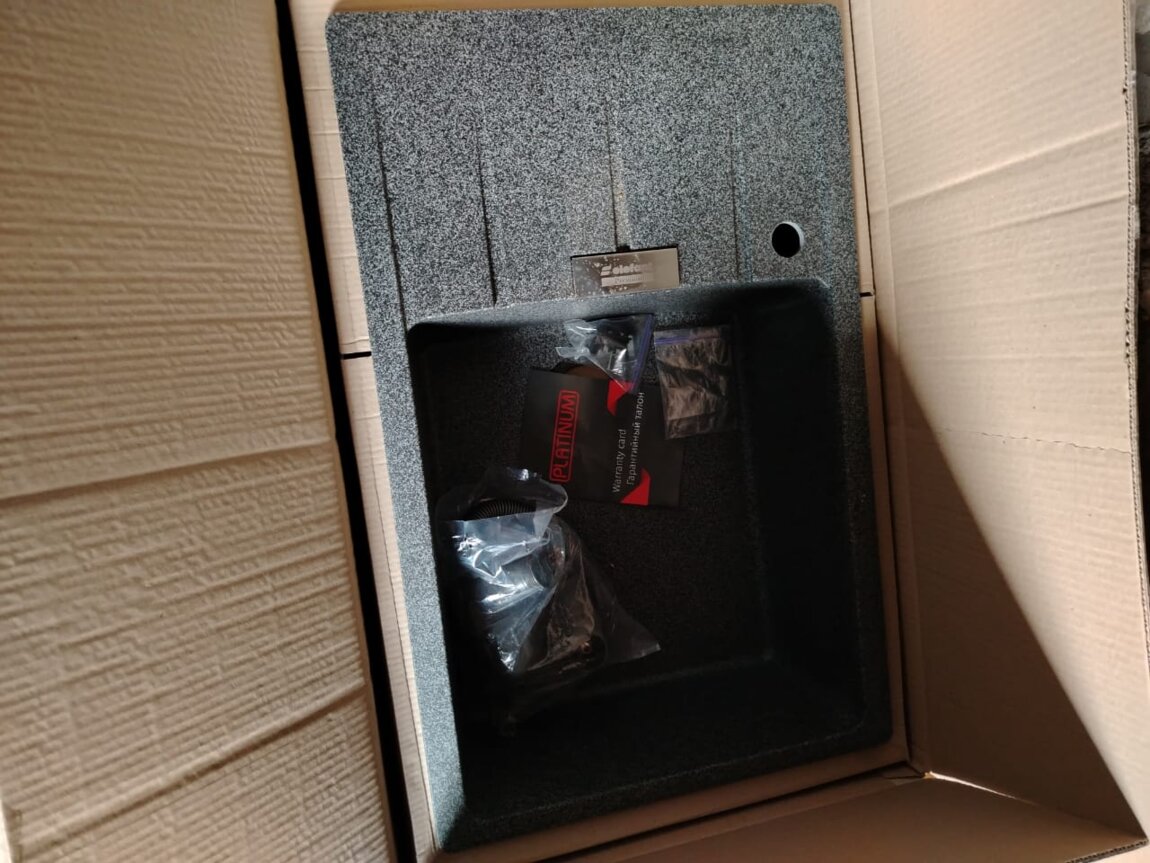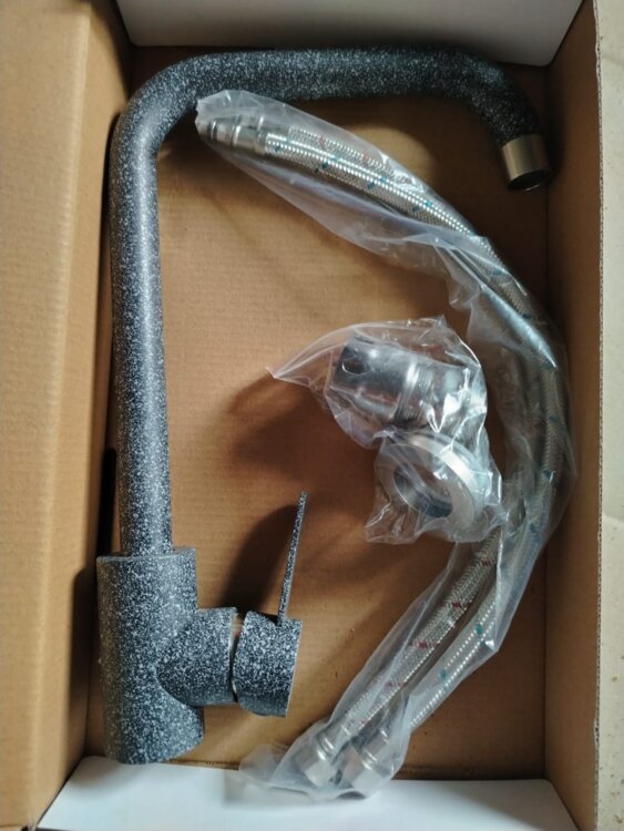 Мойка для кухни гранитная, цвет - графит, размер - 750/500, в комплекте со смесителем.