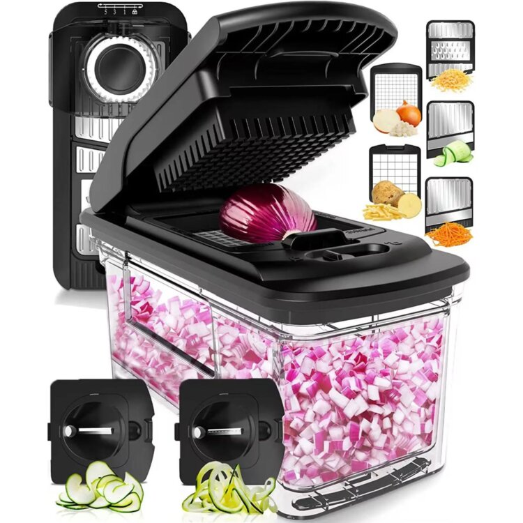 Для вашей безопасности продукт поставляется с защитой для пальцев, которая гарантирует, что вы сможете с легкостью управлять всеми вашими ингредиентами. А когда ужин закончится, вы сможете легко почистить принадлежности, хотя рекомендуется ручная чистка, чтобы сделать ножи более чистыми.