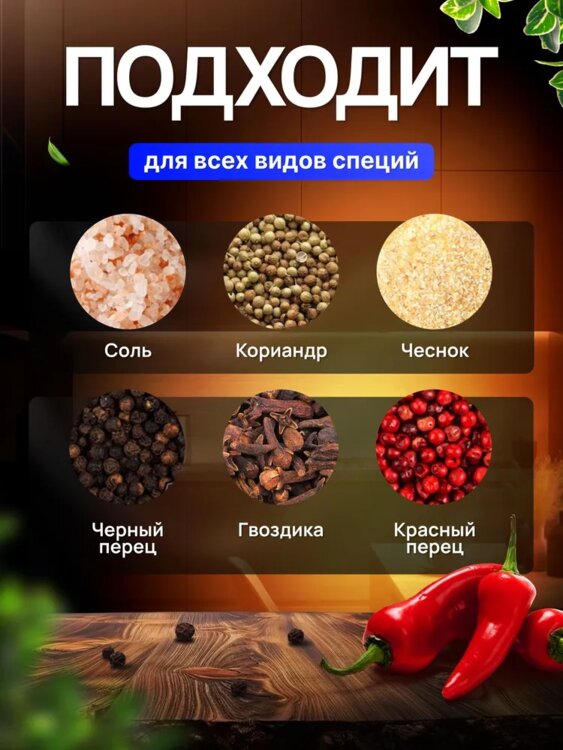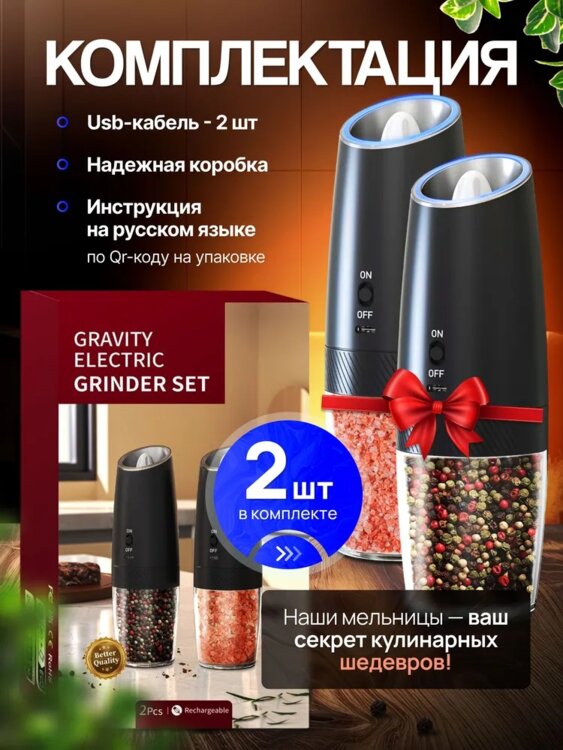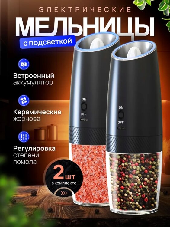 Мельница для специй электрическая- это идеальный инструмент для любителей приготовления пищи. Она позволяет быстро и легко измельчить различные виды специй, такие как перец, соль, зерновые и многое другое. ВСТРОЕННЫЕ АККУМУЛЯТОР ЭКОНОМИЯ на батарейках + кабель для зарядки в комплекте