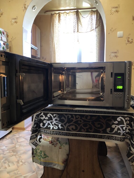 Микроволновка сделана из нержавеющей стали, много режимов работы и рецептов, греет отлично есть гриль, в подарок отдам крепление на стену.