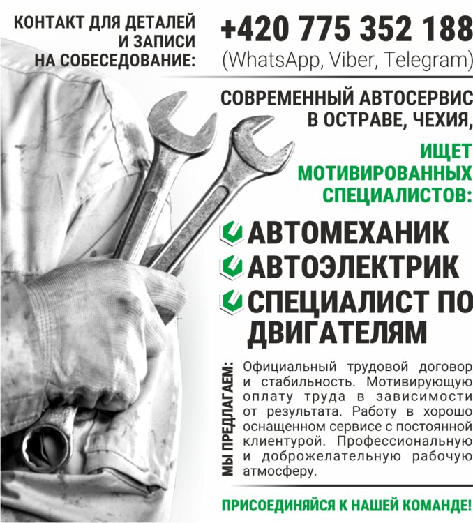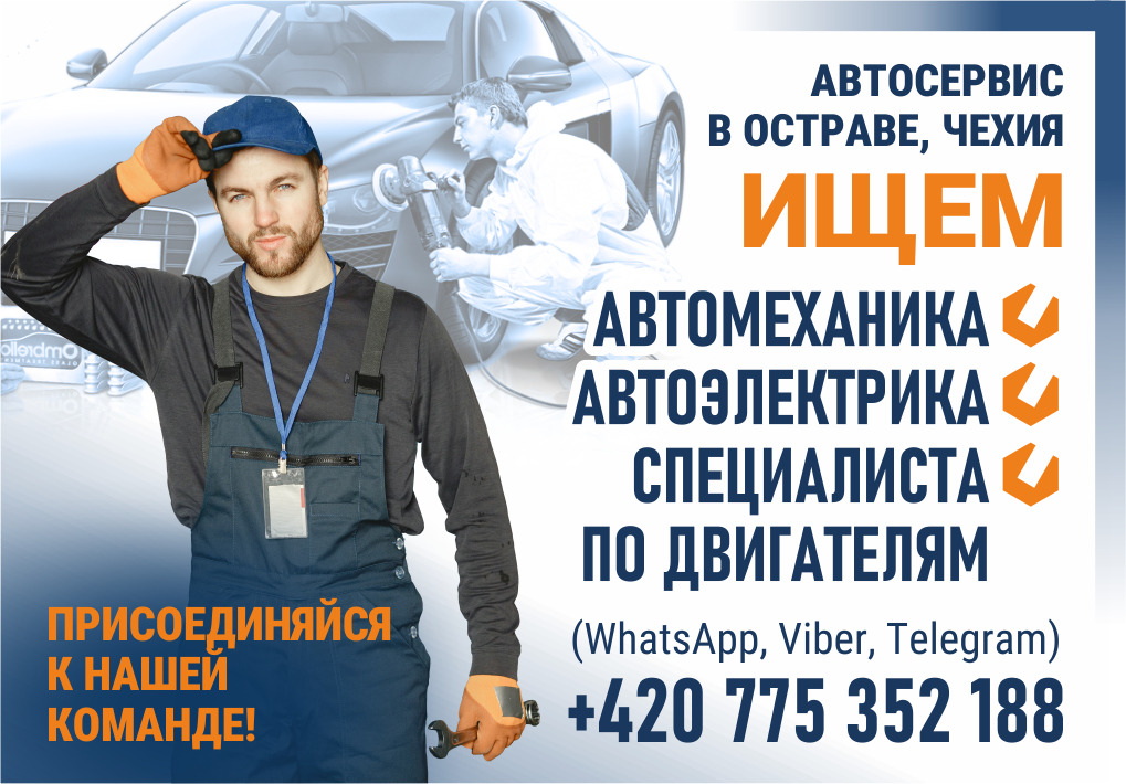 Современный автосервис в Остраве, Чехия, ищет мотивированных специалистов: