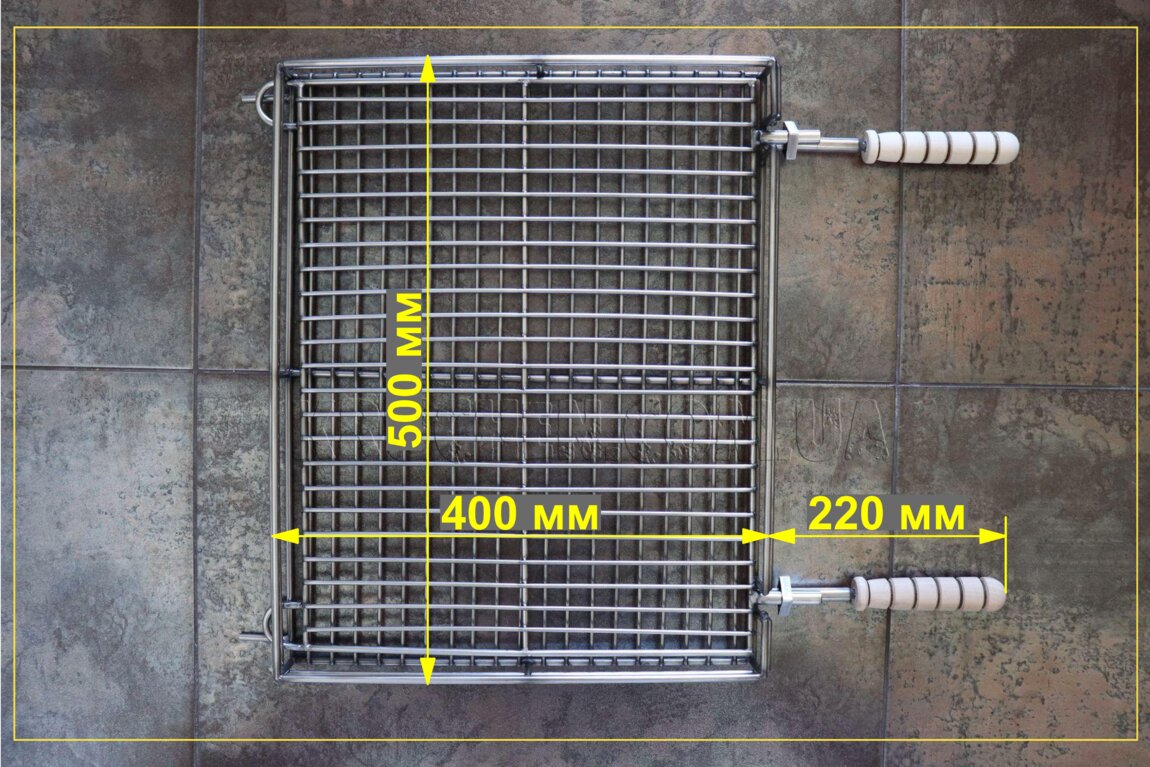 - Решетка гриль (500х400х50) 2 ручки 220, прут: 4,6,12 из нерж стали