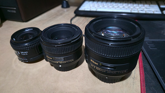 Nikon 85mm f/1.8G. 250$. Nikon 50mm f/1.8G. 130$. Nikon 24 mm f/ 2.8d. 100$