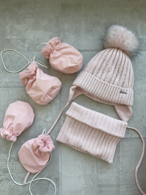 В комплекте тапочки и варежки. Шапка на трикотажном подкладе.