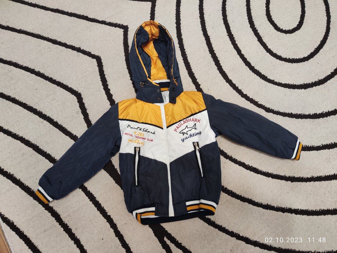 Демисезонная ветровка, 3-6 лет, 1 слой тонкого утеплителя. длина рукава 38 см, длина изделия 40 см. В отличном состоянии.