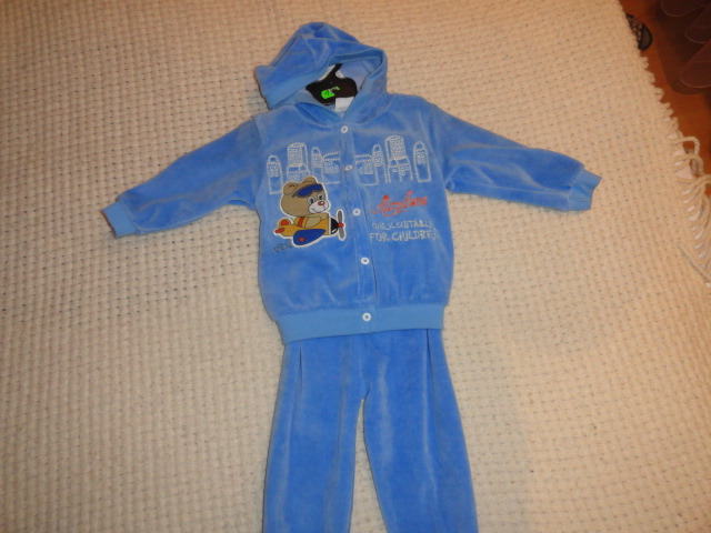 1.Спортивный с начесом; на 3-4 года; рост 104 см; состав хлопок 80% и полиэстр20%; цвет: синий и серый; цена 200 руб