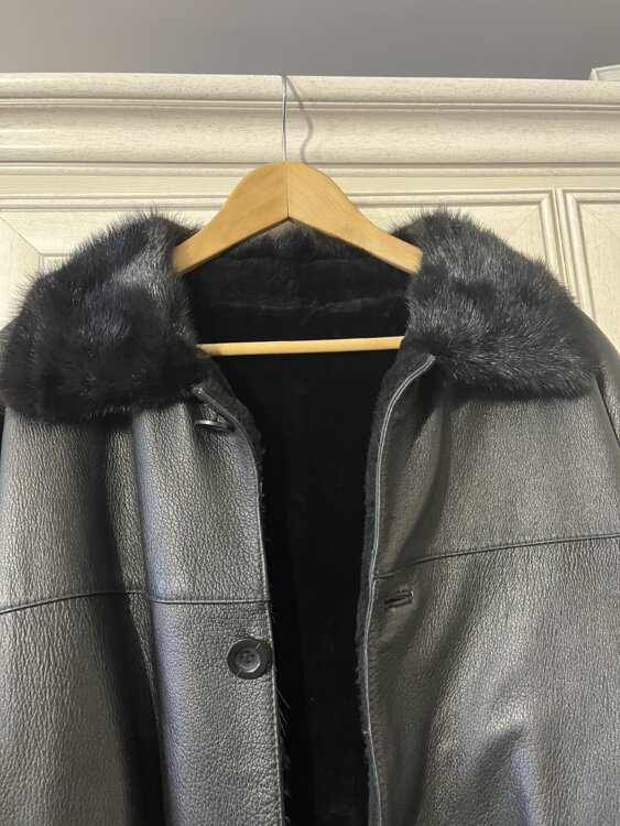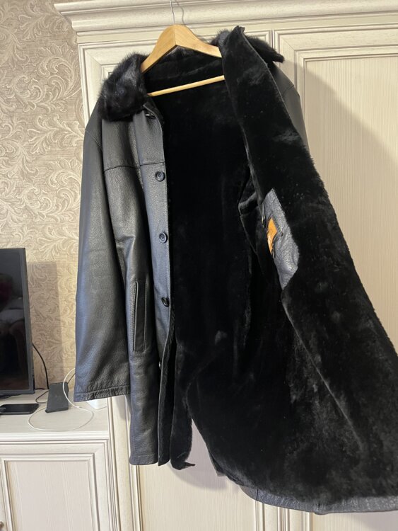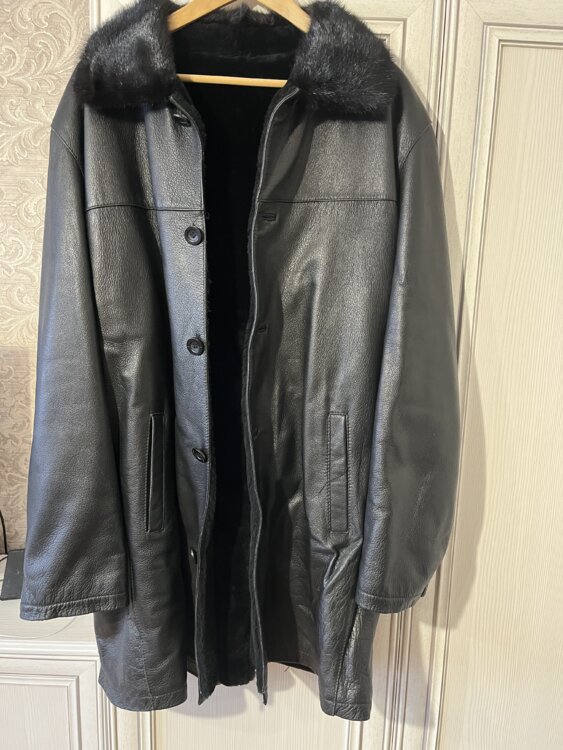 Продам натуральную кожаную дубленку. Мех натуральная цигейка. Воротник норка.