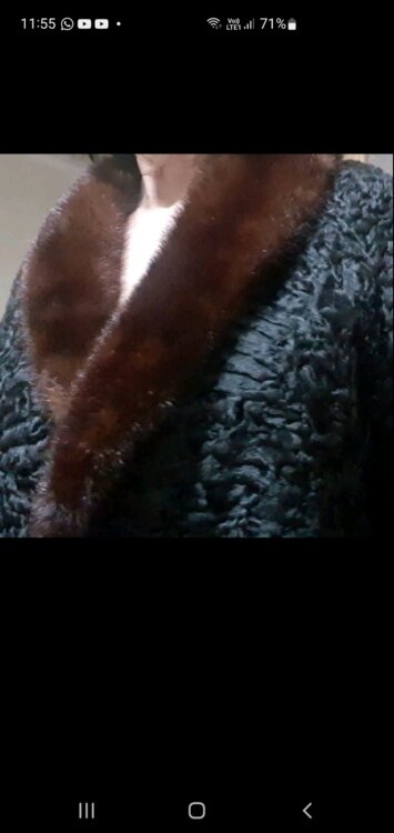 Красивая шубка из чёрного персидского ягнёнка с уникальной волнистой тек структурой с коричневым норковым воротником из Франции. ПОГ48-50 см, длина 80 см. Днестровск.