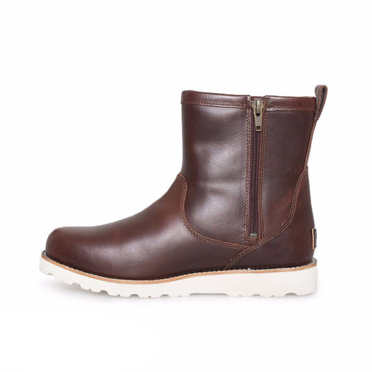 Мужские водонепроницаемые ботинки от UGG. Изготовленные из полированной водонепроницаемой кожи с герметичными швами, ботинки Hendren TL имеют закругленный носок, среднюю высоту голенища и среднюю молнию на внутренней стороне стопы. Подкладка из плюшевой шерсти и установлена на Treadlite от UGG™ для отличного сцепления. Петля для лёгкого входа.