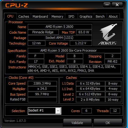 В продаже процессор Ryzen 5 2600, 6 ядер, 12 потоков частотой 3.40 ГГц - 3.90 ГГц.