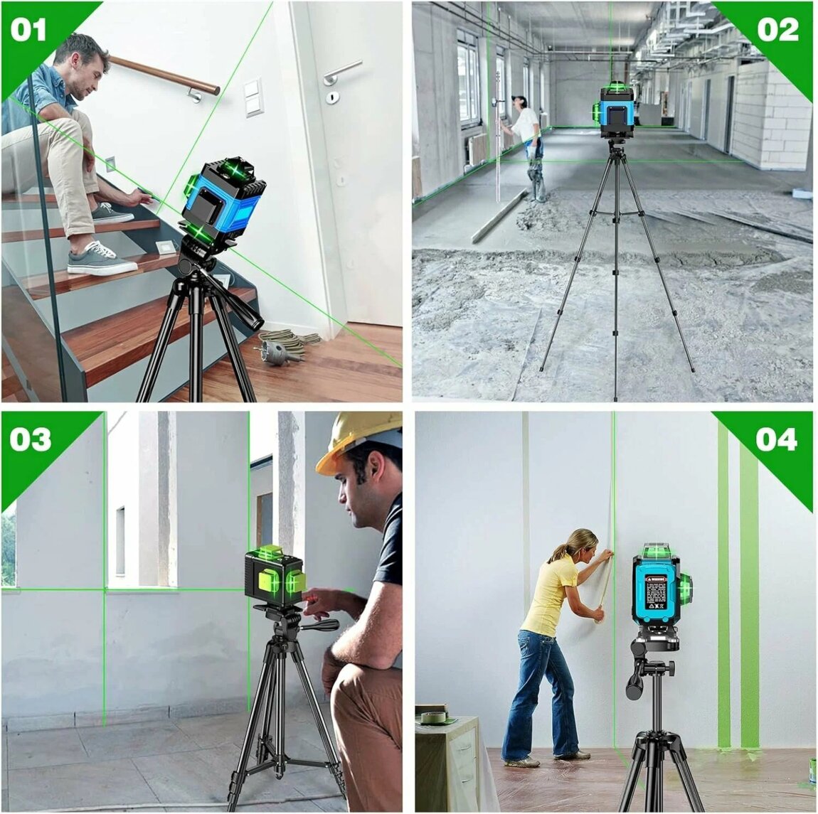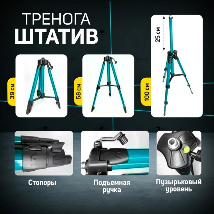 ✅Уровень 4D оснащен 16 линиями, зеленого цвета, что обеспечивает высокую точность и стабильность при работе.
