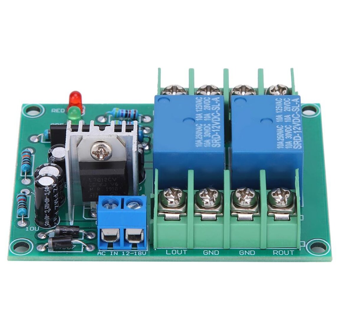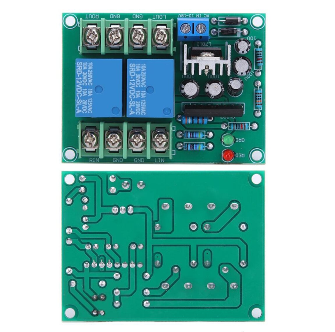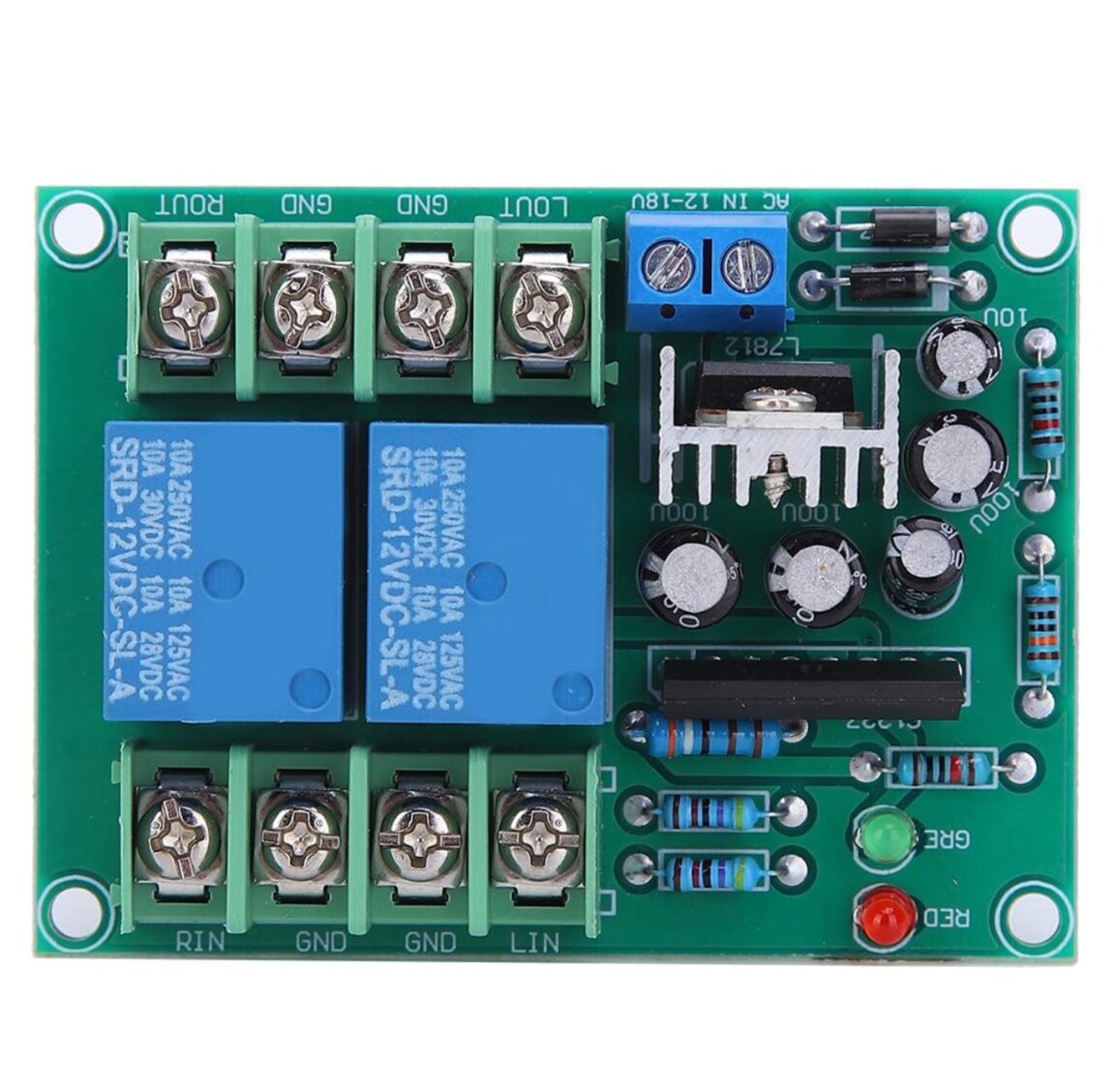 Блок защиты акустических систем - 150 руб. Питание: переменка от 12 до 18 Вольт, либо можно запитать постоянкой минуя выпрямитель на плате.