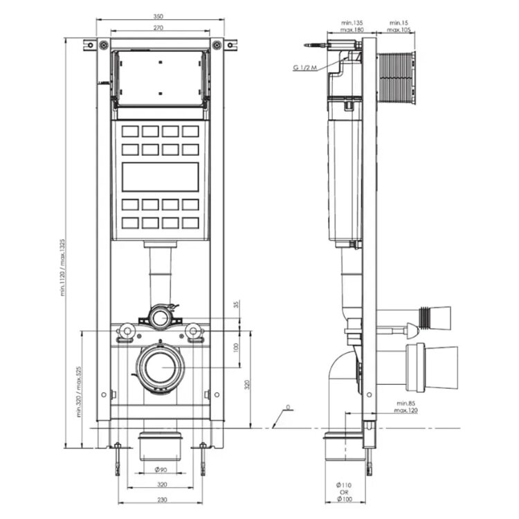 Высота инсталляции, мм - 1120-1325