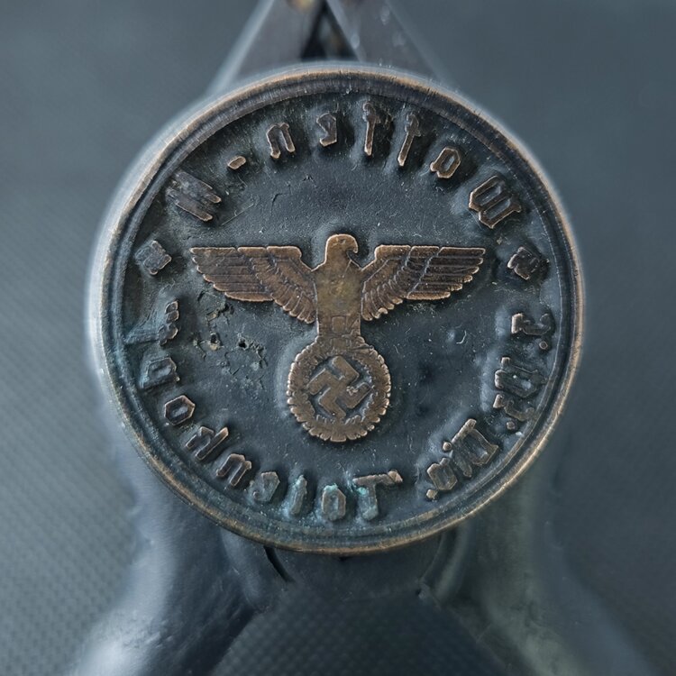 Продаётся старая канцелярская печать с немецкой символикой. По имеющейся информации, предмет не является оригиналом времён Третьего рейха, а представляет собой послевоенную копию, ориентировочно изготовленную в 1945–1950-х годах.