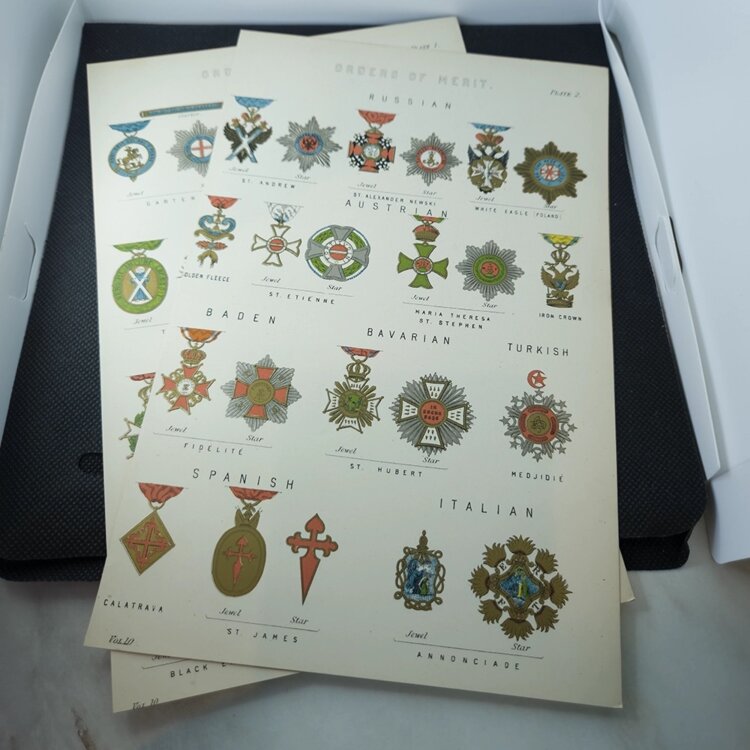 Коллекционный комплект конца XIX века, представляющий высокую историческую и документальную ценность, особенно интересный для коллекционеров антикварной графики, фалеристики и викторианских иллюстрированных энциклопедий.