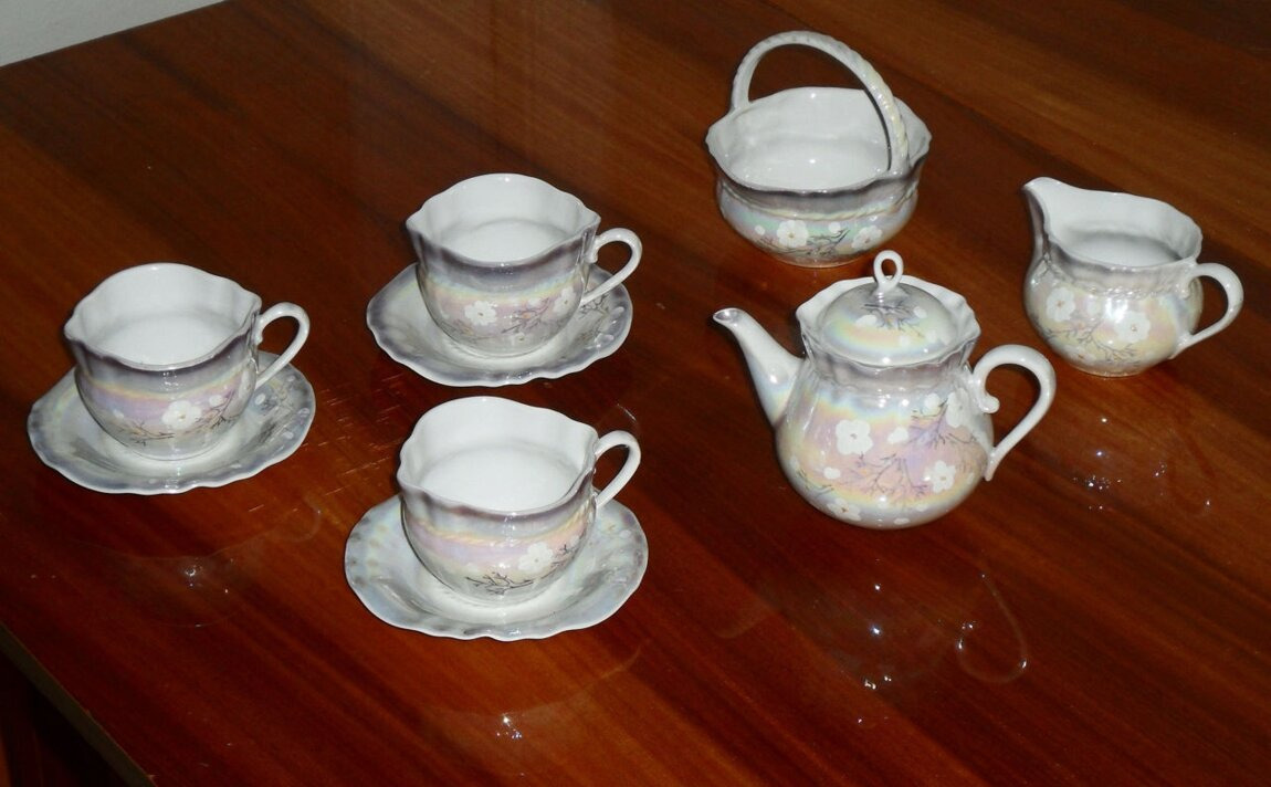 Посуда волнистой формы - большая редкость. Перламутровая расцветка.