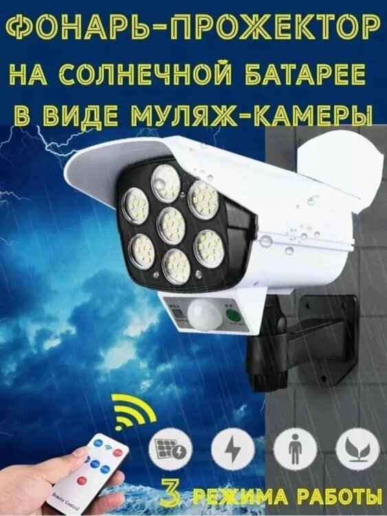 Светильник уличный+ муляж камеры, на солнечной батарее с датчиком движения