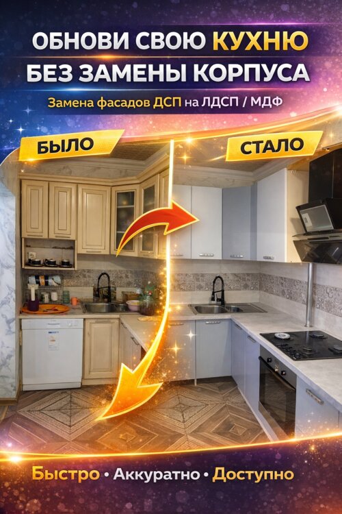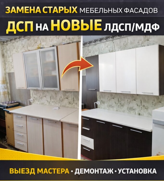 Реставрация фасадов ДСП МДФ замена столешниц.