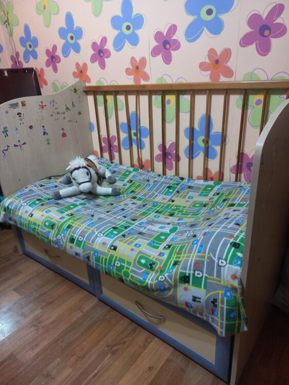 Продается детская кровать длина 1,5 м., ширина 70 см от +0 до..... Сделана на заказ, 120 у. е. Имеет 2 уровня высоты, 2 полностью выдвижных ящика внизу. Можно использовать как манеж. Одна сторона снимается. И можно пользоваться кроватью, пока ребенок не вырастит до 1,5 м.