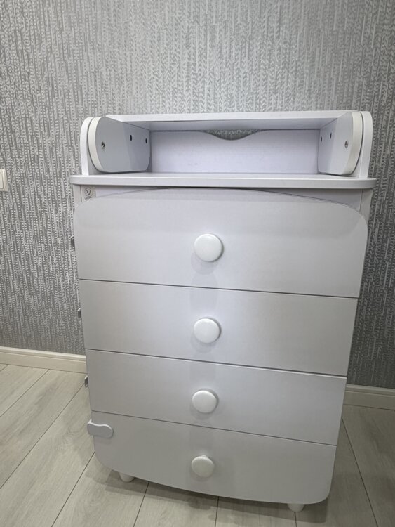 Продам комод пеленатор фирмы Veres в отличном состоянии, белого цвета. Комод Verec изготовлен из высококачественного ламинированного сертифицированного ДСП. Телескопические направляющие с высокой степенью нагрузки (немецкого производства). Верхняя часть комода и ограничительные стенки не имеют острых углов. Пеленатор съёмный. Размер комода: ширина 60 см, глубина 50 см, высота 80 см. В подарок к комоду прилагается мягкий пеленатор.