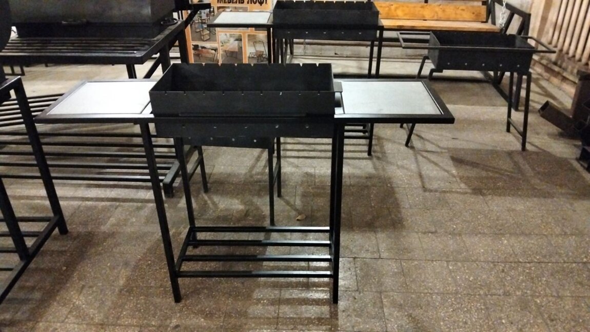 Небольшие но качественные и толстостенные мангалы со столиками с керамогранитной плиткой. Хорошее соотношение цены и качества. А так же в продаже большой выбор других мангалов, кроватей и мебели в стиле ЛОФТ которые можно посмотреть в нашем инстаграм https://www.instagram.com/izdeliyai_metal/