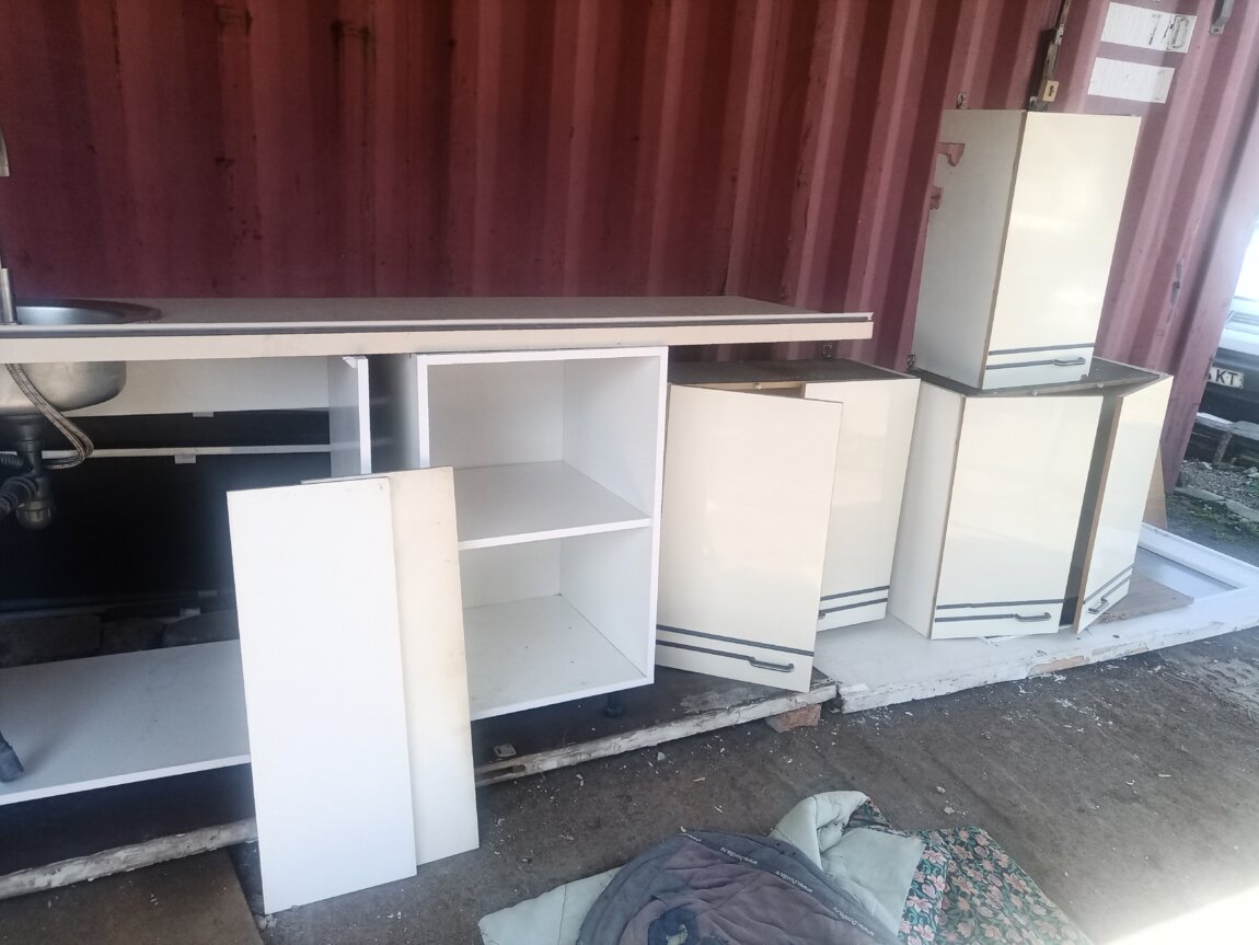 Столешницу (202×60) с мойкой (нерж), 2 навесных шкафчика, рабоч. стол, тумба