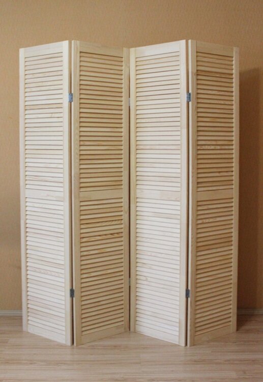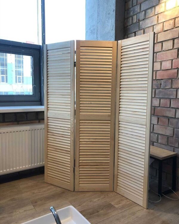 Tehnostil предлагает жалюзийные дверцы из массива сосны — натуральное и стильное решение для зонирования в доме или офисе.