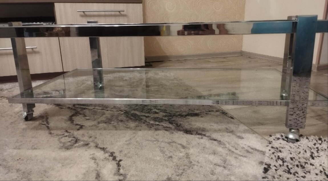 Продам журнальный столик на колёсиках из нержавеющей стали и калёного стекла (выдержит вес человека). Размеры 120х60х40. Писать в телеграм/вайбер +37377730249