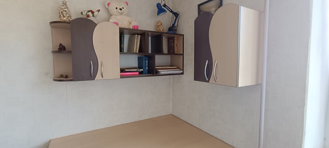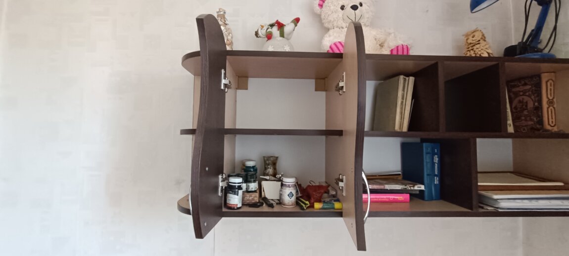 Продам письменный стол, навесные полки и шкафчики, как комплект. Индивидуальное изготовление. В единственном экземпляре. Высококачественный материал. Дуб венге, двухцветный в стиле "Инь-Янь". Стол из двойного ДСП, с тумбой и регулируемой