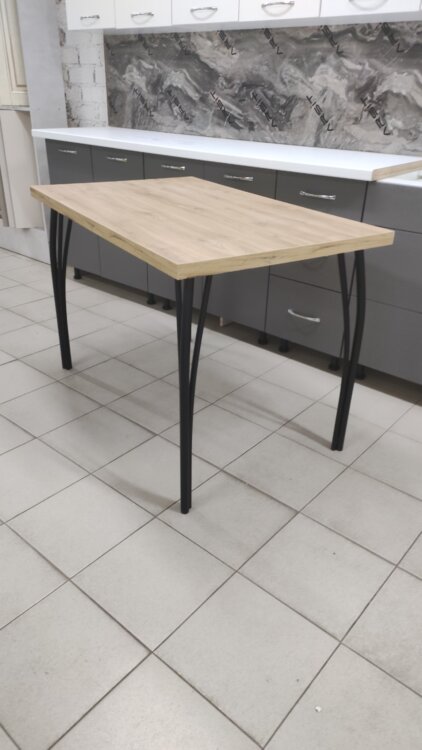 Стол обеденный. Размер 1200*700 мм. Столешница 36 мм. Кромка ПВХ 2 мм. Поклейка полиуретановым клеем. Ножки металлические, порошковая покраска, регулируемые.
