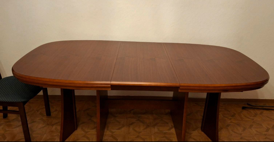 Продаётся большой раскладной стол с 4 дополнительными платами и с 6 стульями, красное дерево. В отличном состоянии. Германия. Обращаться: 77723903, Вайбер.