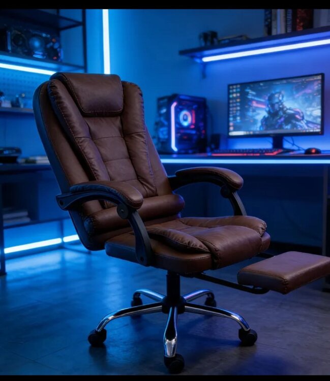 Роскошное кожаное кресло руководителя с подножкой