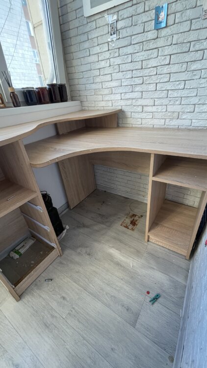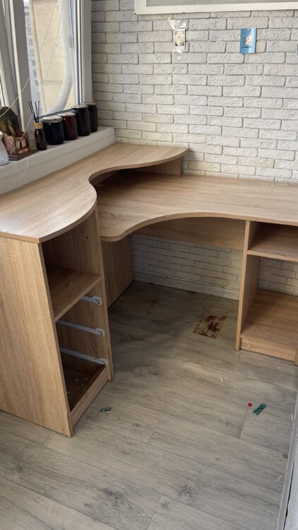 Продам угловой стол с дефектом после затопления. Немого углы повело и торец разбух