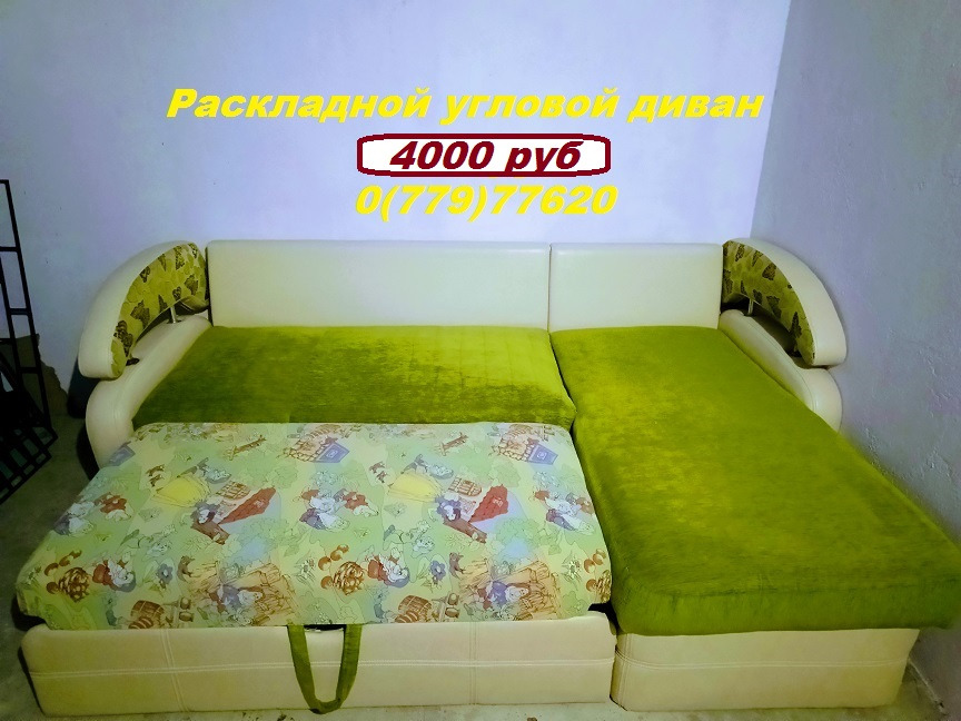 Угловой диван салатового цвета раскладной с нишей для белья - 4000 руб