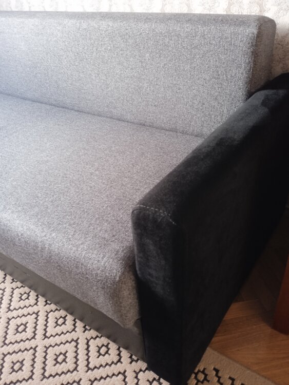 Обивка - гобелен, боковины - кожа, вельвет.