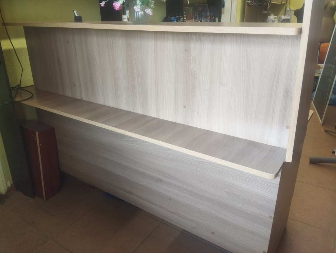 Продаётся офисный стол- стойка регистрации (приёма) в идеальном состоянии. Размеры: длина-170 см; высота-114 см; ширина -70 см. Длина откидывающейся боковины -70 см.