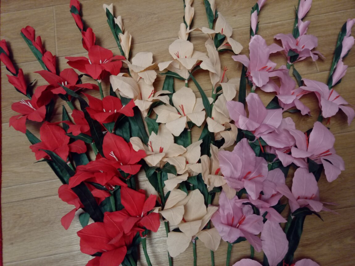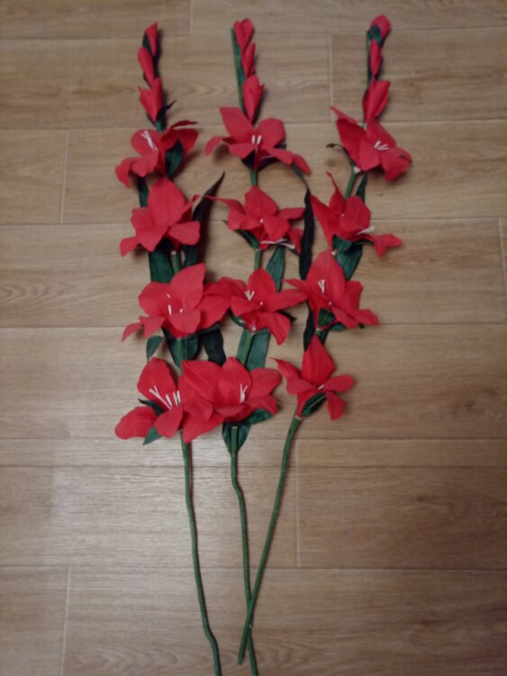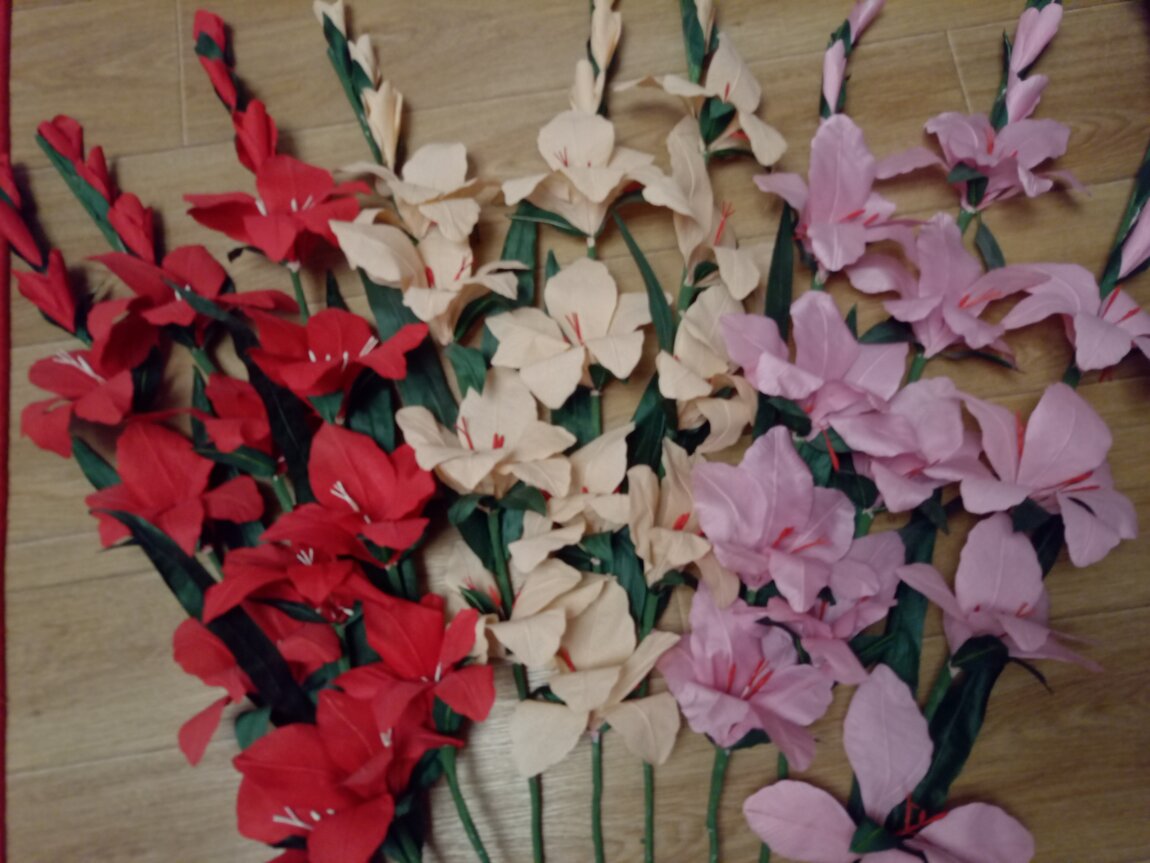Продам цветы Гладиолус ручной работы, для домашнего интерьера. Высота 90-95 см. Количество 9 шт.