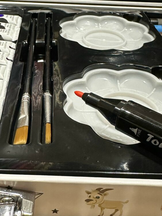 Двусторонние фломастеры для скетчинга - 10 шт., краски- 3 палитры,