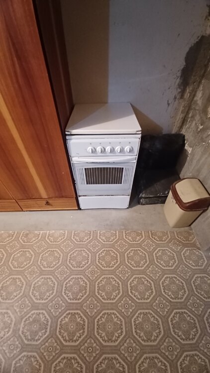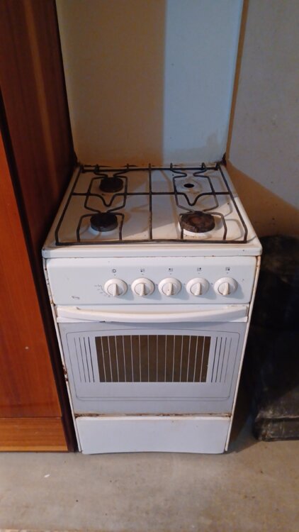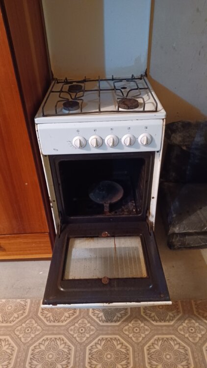 Газ плита, не хватает горелки и противня.