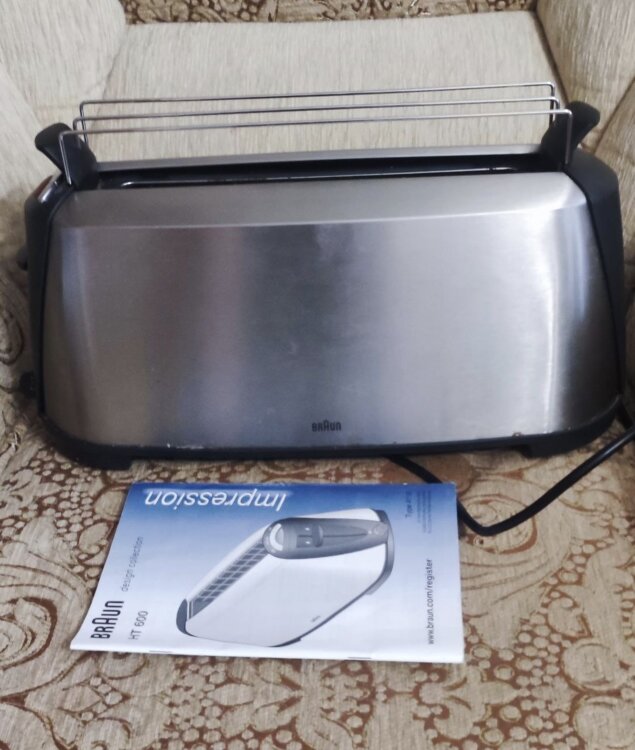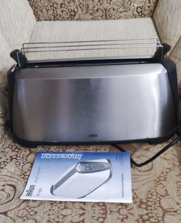 Тостер Braun HT 600 Metal из коллекции Sommelier. Мощность: 1080 Вт. Материал корпуса: металл. Количество слотов: 1. Количество режимов: 7. Механический регулятор степени прожаривания. Электронный контроллер степени прожаривания. Функции: разморозка, подогрев, отмена. Система удобного подъема тостов. Решётка для подогрева и размораживания. Отсек для хранения шнура. Поддон для крошек. Цвет: металлик.