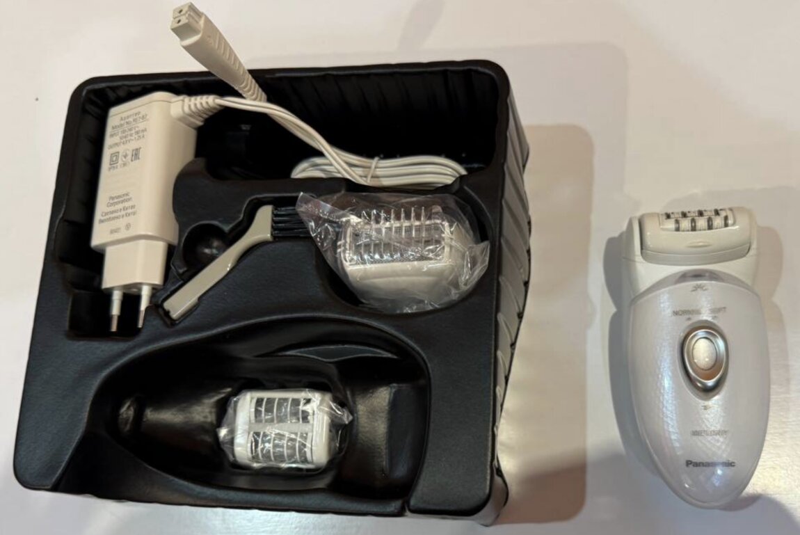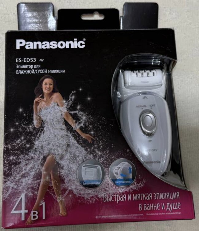 Эпилятор Panasonic ES-ED53-W520 позволяет аккуратно удалять волоски с длиной от 0,5 мм благодаря применению системы двойных дисковых пинцетов. При обработке чувствительной кожи можно выбрать щадящий режим с меньшей скоростью их вращения. *МНОГОФУНКЦИОНАЛЬНОСТЬ. В комплект поставки входит большое количество насадок, которые можно использовать для обработки рук, ног и чувствительных зон. Среди них есть и гребень для создания интимных стрижек или аккуратного выравнивания волосков перед обработкой. *НИКАКОЙ БОЛИ. Плавающая головка с оптимизированным углом наклона точно повторяет контуры тела, не допуская возникновения сильного раздражения кожи и не создавая микротравм. Для полного устранения неприятных ощущений можно воспользоваться специальными кремами или пенкой – качественная изоляция корпуса не допускает повреждения прибора влагой. *АВТОНОМНАЯ РАБОТА. Эпиляцию можно проводить в любом удобном месте – в том числе и вдали от розетки. Аккумулятор устройства заряжается в течение часа и обеспечивает 30 минут его непрерывной работы.