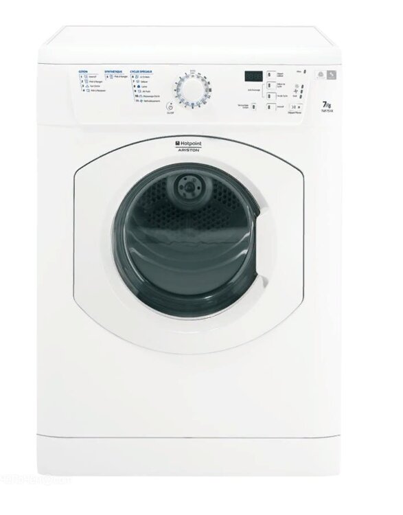 Сушильная машина Hotpoint-Ariston TVF 751 вентиляционного типа при нагреве воздуха выдувает лишнюю влагу наружу за пределы квартиры, балкона и т. д., поэтому требуют подключения к вентиляционному каналу через гофрированную или пластиковую трубу.