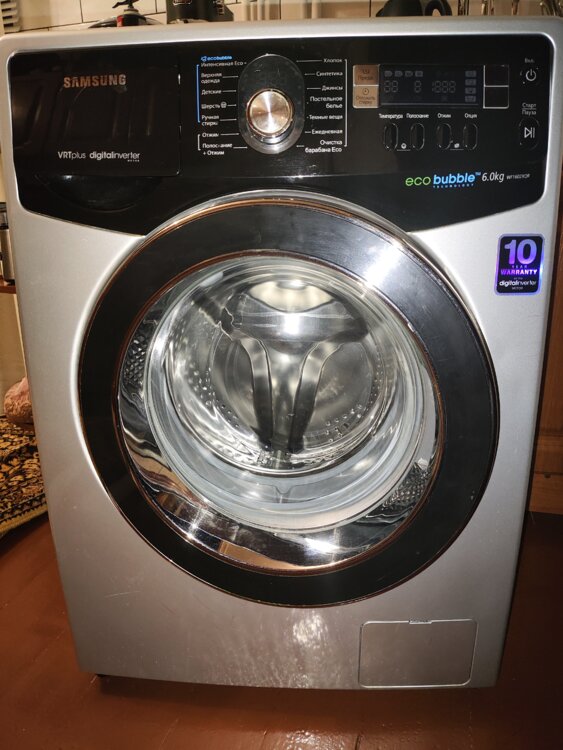 Барабан чистый, резинка люка без плесени и неприятных запахов. Корпус без трещин и повреждений. Подходит для ежедневного использования в квартире или доме.