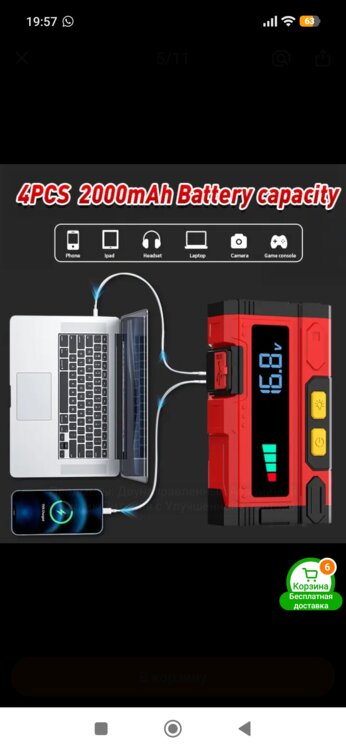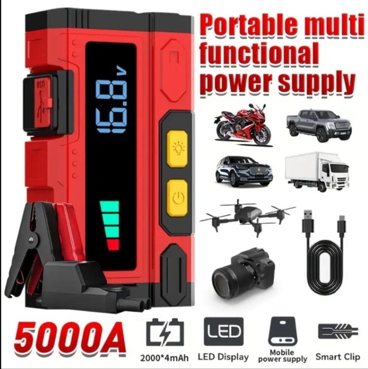 Новый мощный автомобильный пусковой стартер. Пиковая нагрузка 5000A, для бензиновых и дизельных двигателей