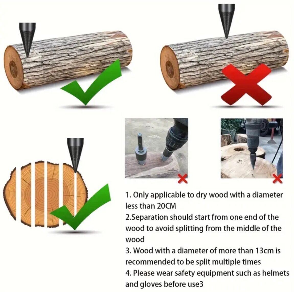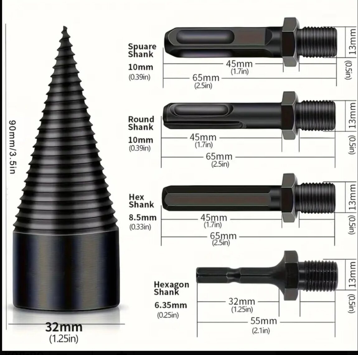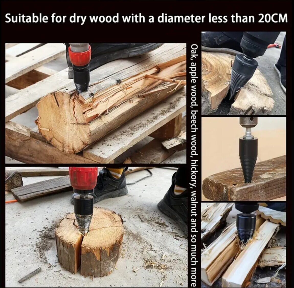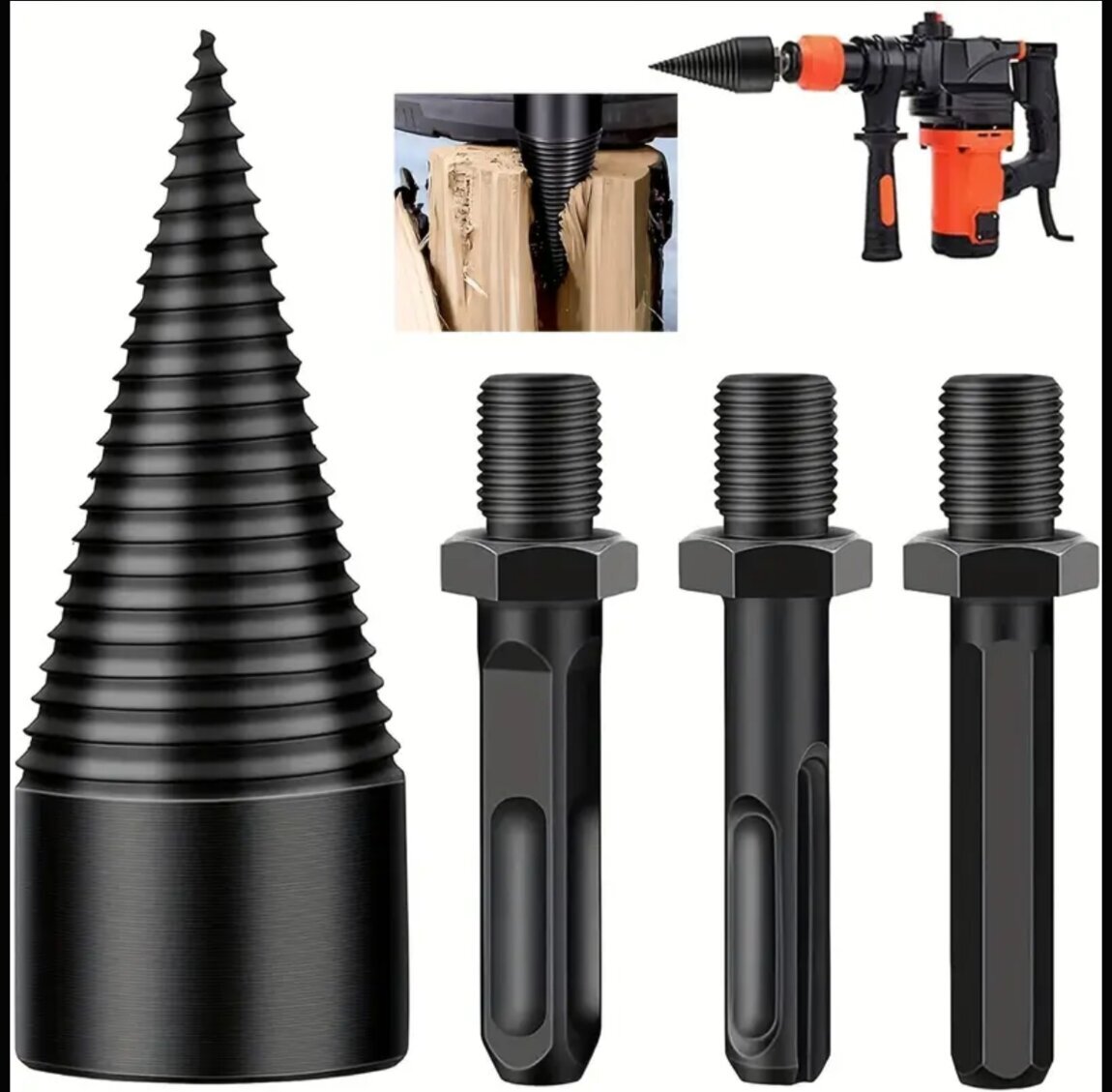 Набор для разделения дров Heavy-Duty - Углеродистая сталь, черное оксидное покрытие с круглыми, квадратными и шестигранными хвостовиками для электрических дрелей
