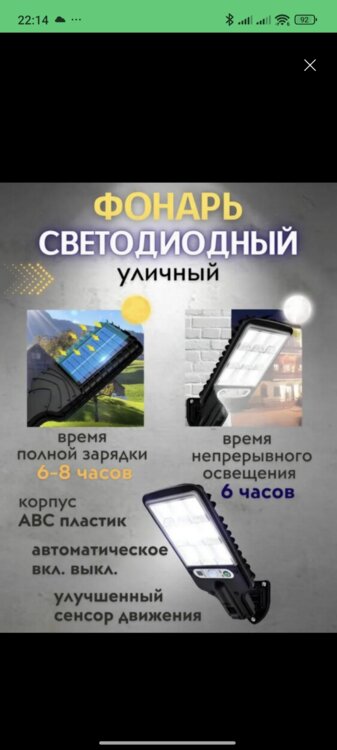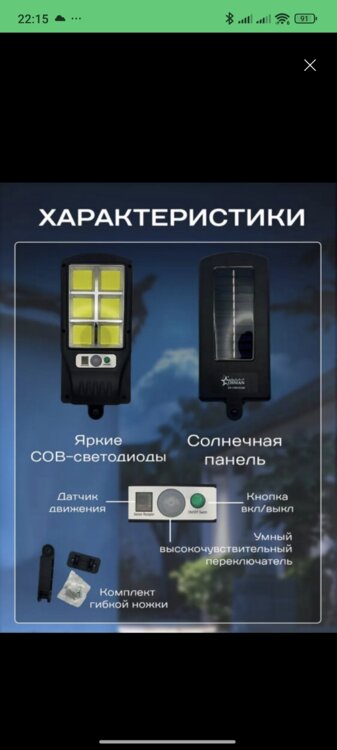 Уличный фонарь 200р. С датчиком движения, солнечной панелью и батареей.