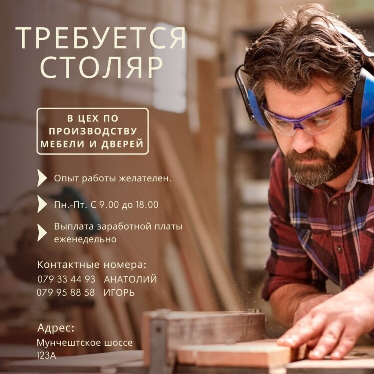 Компания WoodDoor, специализирующаяся на производстве межкомнатных дверей и мебели на заказ, с более чем 20-летним опытом работы на рынке Республики Молдова и ЕС, приглашает на работу квалифицированного столяра в связи с расширением команды.